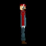un personaje con guantes blancos, remera roja, chaleco azul con Bigote, ojos celestes, gorra roja con una “M” representando su nombre “Mario”